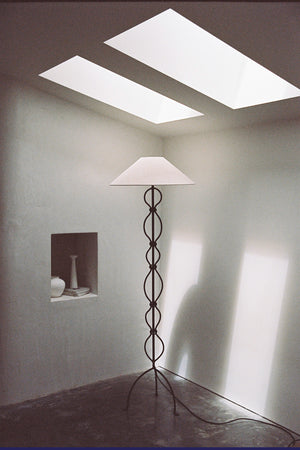 Penelope is an effortlessly striking piece very close to our hearts. She is elegantly balanced in her curves and details and holds an old-worldly energy that transcends trends allowing her to journey with you for decades to come. Penelope was dreamt of long ago and it is with much pride that we share her with you now. Be it a minimalist or maximalist setting, she’s certain to fit in any home. Penelope is accompanied by a carefully considered, eastern-inspired shade hand-made in Australia from soft white French linen.