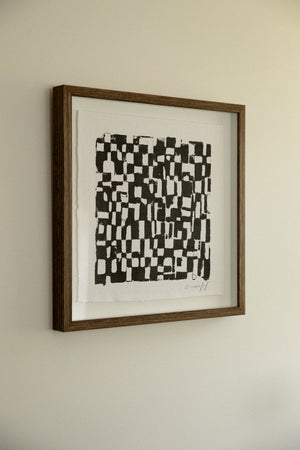 Details: Acrylic ink pressed onto thick textured cotton Khadi paper hand framed float framed in a walnut toned Tasmanian oak.Ready to hang. Ready to ship.